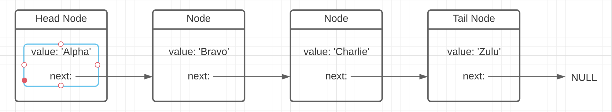 A linked list is a linear data structure where each node gets stored at unordered locations in memory. The first node in a linked list is the head and the last node is the tail. A node in a linked list will contain at least a value to store and a pointer to the next node. A pointer is a reference to an object. Linked lists are either singly-linked or doubly-linked. A node in a doubly-linked list has an extra pointer to the previous node. This means you can traverse the list in both forward and backward directions at the cost of using up more space for the extra pointer. Linked lists can either be circular (the tail node points to the head) or null-terminated (the tail node points to null).